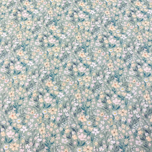 Villela de algodón con fondo marrón chocolate y florecitas.